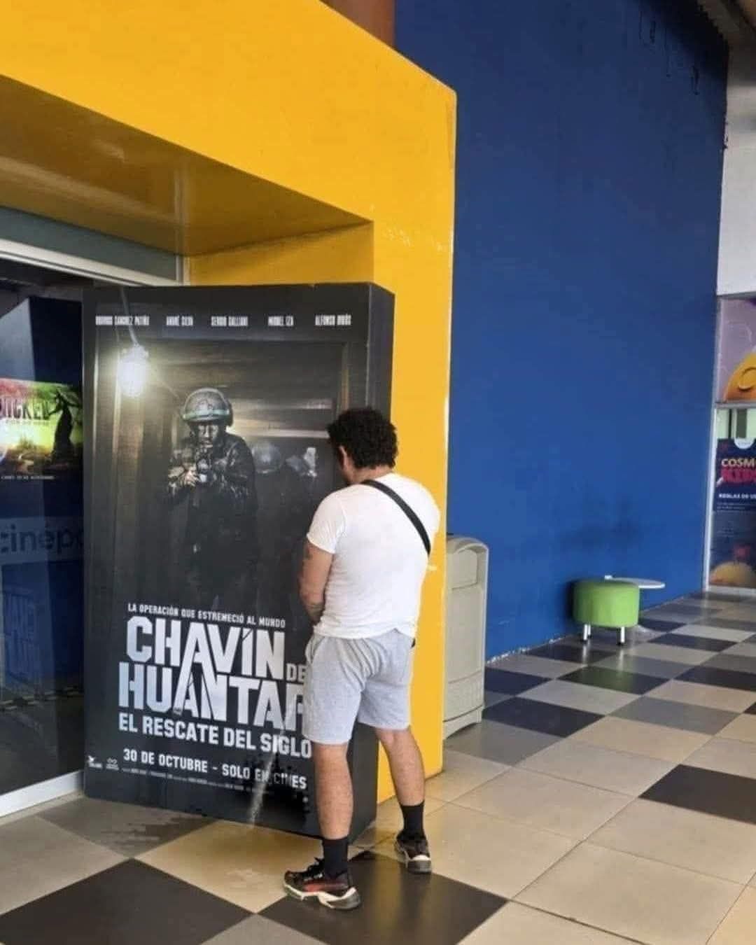Una fotografía difundida en redes sociales ha causado gran polémica entre los usuarios. En la imagen se observa a un joven posando junto al afiche promocional de la película “Chavín de Huántar”, aunque lo que más ha llamado la atención es que, según testigos, el sujeto habría miccionado en el lugar momentos antes de tomarse la foto.
