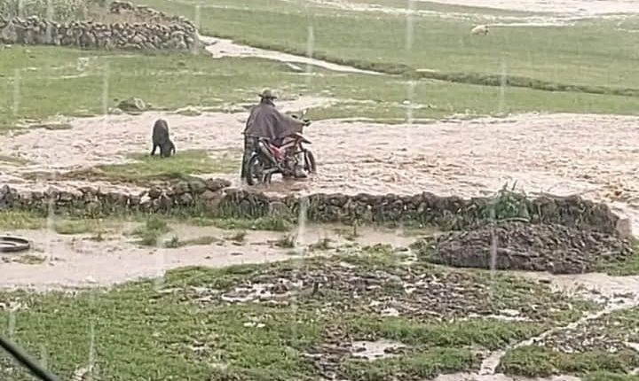 Torrencial lluvia en la parte alta de Carabamba(Bello Amanecer, Luis Vicente, Ahijadero), como se muestra en las imágenes las pampas han quedado totalmente cubiertas del agua.