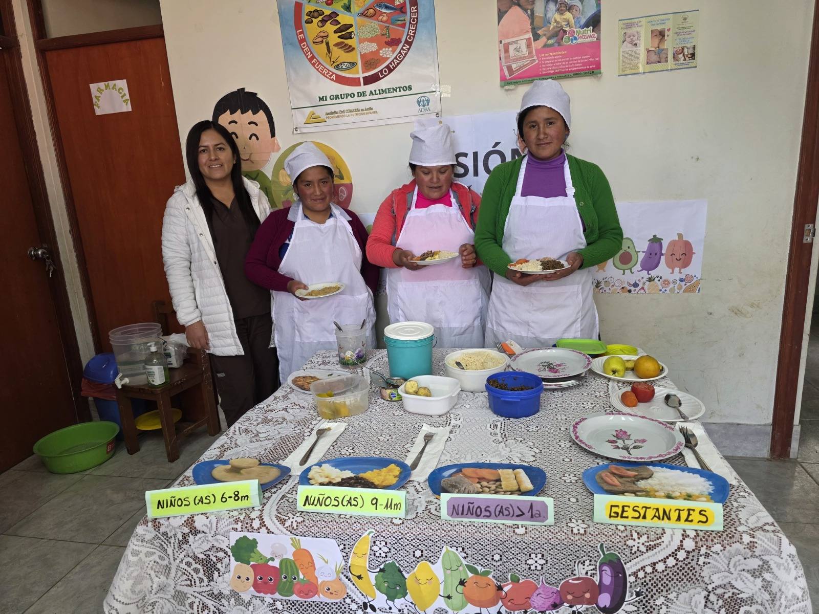 Dentro de la sesión se presentaron alimentos preparados para niños de 6 a 8 meses, de 9 a 11 meses, de 1 año y madres gestantes, donde destacan el huevo, choclo, hígado de res, pollo, bofe, yuca, camote, lentejas, menestras, pescado entre otros.